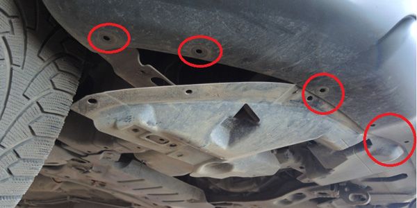 - Снимите пластиковую защиту с правой стороны бампера по направлению движения автомобиля.