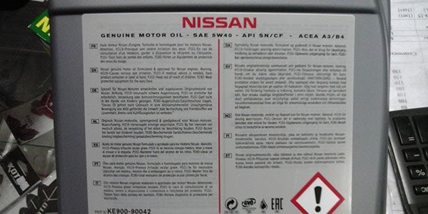 Вся необходимая информация от производителя размещена на этикетках с обеих сторон канистры. Как же распознать оригинальное масло Nissan по этикетке?
