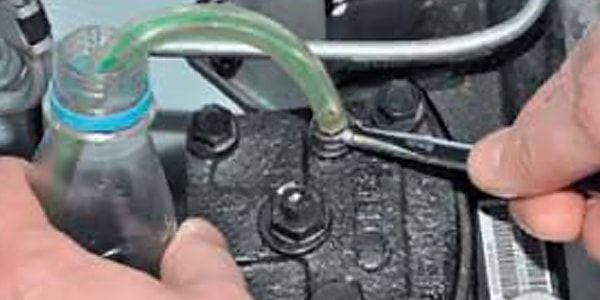 - Прекратите прокачку, когда сливная бутылка перестанет заполняться воздухом, поступающим из возвратного шланга. Это будет свидетельствовать о том, что бак заполняется новой чистой жидкостью.