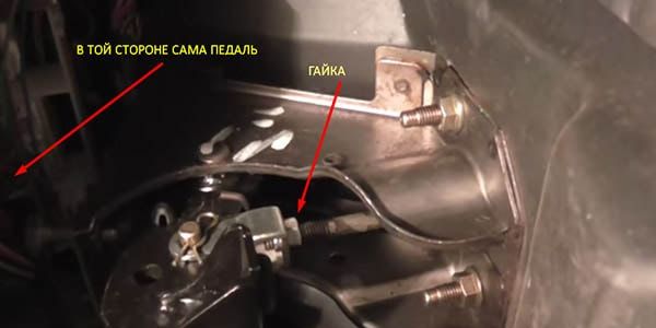 - Займите положение под педалью сцепления и найдите специальную контргайку;