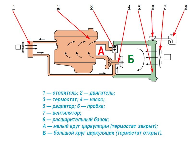 Существует два типа циркуляции антифриза: малый и большой круг. Малый круг предназначен для быстрого прогрева двигателя и охлаждающей жидкости, в то время как большой круг обеспечивает охлаждение антифриза после завершения полного цикла теплообмена.