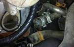 - Рожковым ключом на 17 удерживайте гайку на направляющей, а накидным ключом на 12 или головкой с трещоткой открутите нижний болт и ослабьте верхний болт крепления скобы суппорта.