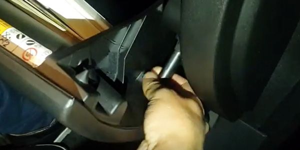 - Откройте бардачок и снимите ограничитель, который находится с правой стороны.