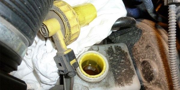 В первую очередь, необходимо удалить остатки старой тормозной жидкости. Открутите крышку тормозного бачка и слейте оставшуюся жидкость. После этого закройте крышку.