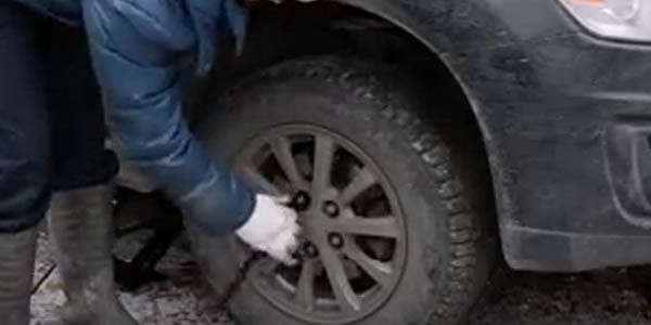 - Установите домкрат.