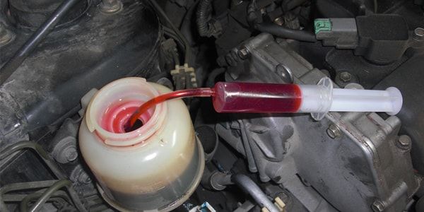 - Подготовьте два и более литра новой жидкости, подходящей для вашего автомобиля, а также емкость и грушу или шприц для откачки масла из бачка;